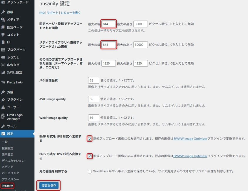 「Imsanity」プラグインの設定 :画像リサイズ・圧縮・フィアル形式をjpegへ変更